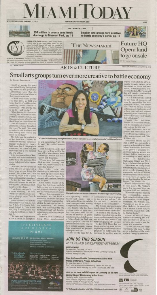 A magazine came to cover the event, but I had to ask them to leave since art was still being hung when they arrived. We didn’t sell as much as we hoped. We couldn’t talk to buyers interested in the artists’ work because there were so many things going on and fires we had to put out. It just didn’t seem like a serious event for buyers.